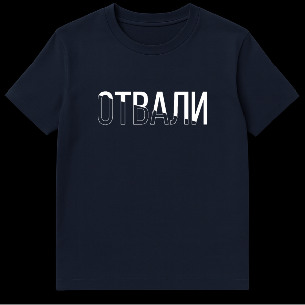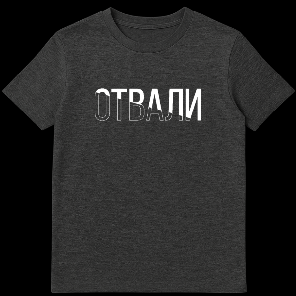 Make a bold statement with our ‘OTVALI’ Russian T-Shirt, a minimalist graphic piece designed for those who aren’t afraid to speak their mind. The t-shirt proudly displays the Russian word ‘OTVALI’ (pronounced ot-VAH-lee) in a powerful, sans-serif typeface. What sets this design apart is its clever visual split: the initial letters ‘OTV’ are rendered as a clean, modern outline, while the subsequent ‘ALI’ burst forth in solid white. This contrast creates a dynamic, visually engaging effect that perfectly complements the directness of the message.