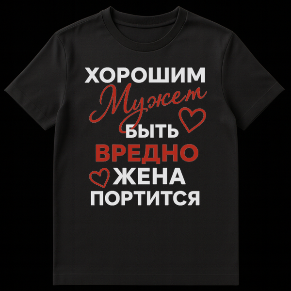 Embrace a touch of Russian humor with this captivating T-shirt. The central feature is the witty Russian phrase, “Š„ŠŠ ŠŠØŠŠ ŠŃжем ŠŠ«Š¢Š¬ ŠŠ ŠŠŠŠ ŠŠŠŠ ŠŠŠ Š¢ŠŠ¢Š”ŠÆ,” which translates to “Being a good husband is harmful, the wife gets spoiled.” This playful saying is a common, lighthearted jab at marital dynamics, suggesting that excessive pampering can lead to a wife becoming overly accustomed to luxury or attention, rather than a genuine criticism. It’s a humorous take on relationships, often shared among friends and family for a chuckle.