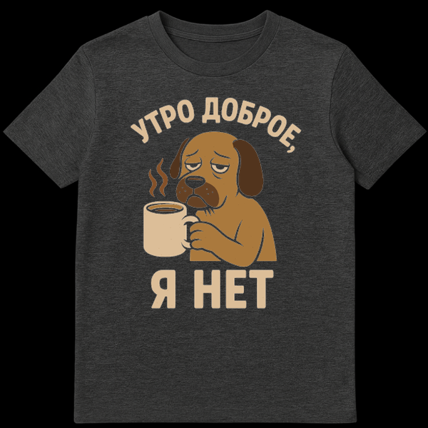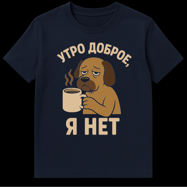 The core of the design’s appeal lies in its humor and relatability for anyone who isn’t a morning person. The theme of morning grumpiness and anti-morning sentiment is powerfully articulated by the Russian text: “Š£Š¢Š Š ŠŠŠŠ ŠŠ, ŠÆ ŠŠŠ¢.” This phrase, translating to “Good morning, I am not,” is a common, witty retort in Russian culture, playing on the polite greeting and humorously rejecting its optimistic premise. It’s a blunt, charmingly defiant statement that resonates with anyone who needs a few cups of coffee before they’re ready to face the world. This t-shirt isn’t just clothing; it’s a statement, a conversation starter, and a badge of honor for the perpetually sleepy.