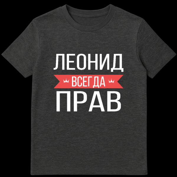 Celebrate the ultimate authority with our “Leonid Is Always Right” Russian T-Shirt. This design features a powerful statement in bold white Cyrillic text, set against a classic grey background. The central word, “ŠŠ”ŠŠŠŠ” (ALWAYS), is prominently displayed on a vibrant red banner, symbolizing importance and strength, and is elegantly flanked by small white crowns, adding a touch of regal humor. Above this, the name “ŠŠŠŠŠŠ” (LEONID) is clearly visible, with “ŠŠ ŠŠ” (IS RIGHT) completing the phrase below. The full slogan, “ŠŠŠŠŠŠ ŠŠ”ŠŠŠŠ ŠŠ ŠŠ,” translates to “LEONID IS ALWAYS RIGHT.”