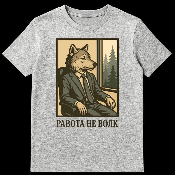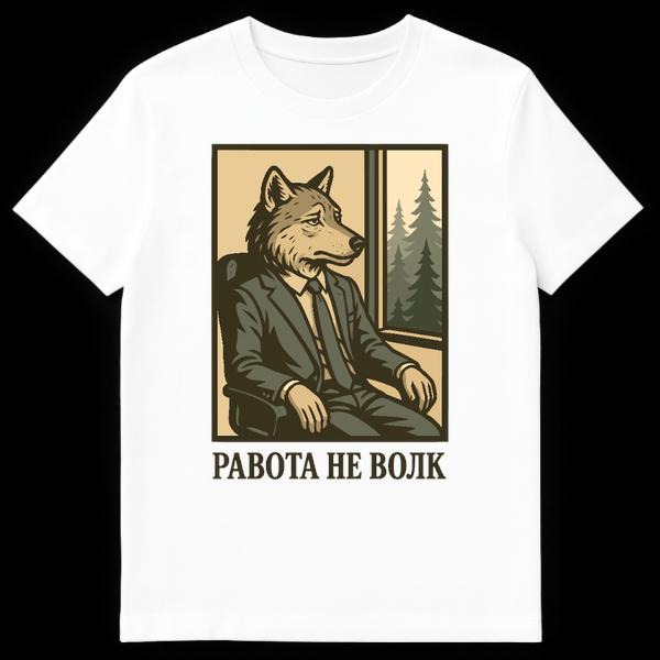 The Russian text below, “Š ŠŠŠŠ¢Š ŠŠ ŠŠŠŠ,” translates to “RABOTA NE VOLK,” meaning “Work is not a wolf.” This is a witty play on the Russian proverb “Work is not a wolf, it won’t run away into the forest,” which traditionally encourages one not to rush or overwork. Here, it’s humorously recontextualized to highlight the inescapable, enduring nature of work itself, making it a perfect conversation starter for anyone who’s ever felt trapped in the office. It’s a subtle nod to Russian culture and a universal sentiment about the daily hustle.