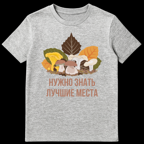 Beneath this enchanting forest scene, a light reddish-brown Russian inscription reads: ‘ŠŠ£ŠŠŠ ŠŠŠŠ¢Š¬ ŠŠ£Š§ŠØŠŠ ŠŠŠ”Š¢Š’ (pronounced ‘NUZHNO ZNAT LUCHSHIE MESTA’), which translates to ‘You need to know the best places.’ This phrase is a common, knowing quip among experienced mushroom pickers in Eastern European cultures, highlighting the insider knowledge and a touch of friendly secrecy involved in finding prime foraging spots. It’s a humorous and authentic nod to the passion and skill required to find nature’s hidden treasures, making it a perfect conversation starter for anyone who loves the outdoors, Slavic culture, or a good hunt for wild edibles.