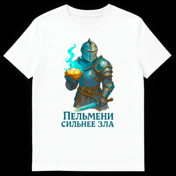 The aesthetic is a nostalgic tribute to 8-bit and 16-bit gaming graphics, appealing to gamers, retro enthusiasts, and anyone who appreciates a unique artistic style. Below this valiant, dumpling-fueled knight, the Cyrillic text “ŠŠŠŠ¬ŠŠŠŠ Š”ŠŠŠ¬ŠŠŠ ŠŠŠ” boldly proclaims “Pelmeni are stronger than evil.” This slogan is a playful and witty statement, celebrating the universally comforting and fortifying power of pelmeni ā a beloved dish in Russian and Eastern European cultures ā as a force mighty enough to overcome any challenge, even evil itself. It’s a perfect blend of humor, fantasy, and cultural appreciation, making it an ideal gift for foodies, gamers, and those with a taste for the wonderfully absurd.