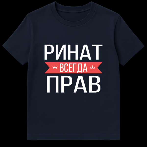 The style is intentionally clean and focused on typography, making the powerful message the star of the show. It’s not just a piece of clothing; it’s a humorous badge of honor, perfect for casual wear, social gatherings, or as a thoughtful gift for the ‘Rinat’ in your life who truly believes they have all the answers. The blend of bold text, a strong color palette, and a universally relatable joke about being right makes this T-shirt a standout.