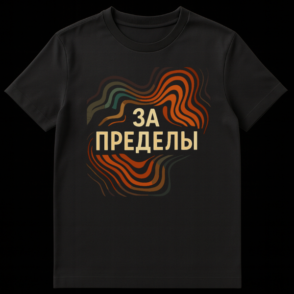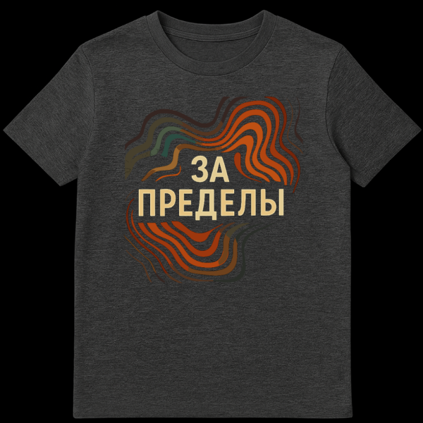 This t-shirt features ‘ZA PREDELY’ in bold gold, meaning ‘BEYOND THE LIMITS’. It’s encircled by dynamic, organic waves in earthy tones, symbolizing exploration and pushing boundaries.