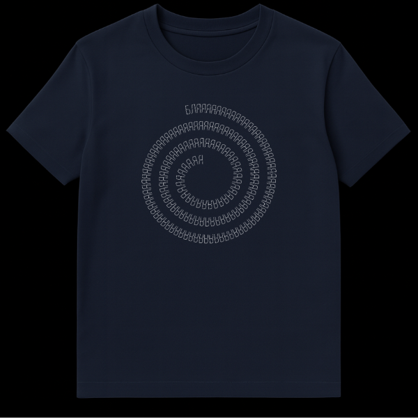 This minimalist Russian T-Shirt features a captivating spiral pattern formed by repeating Cyrillic letters “B” and “YA”. It’s a visual representation of “Blyaa,” a common Russian expletive, humorously elongated to express extreme emotion or surprise.