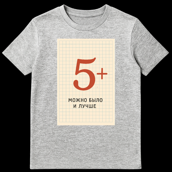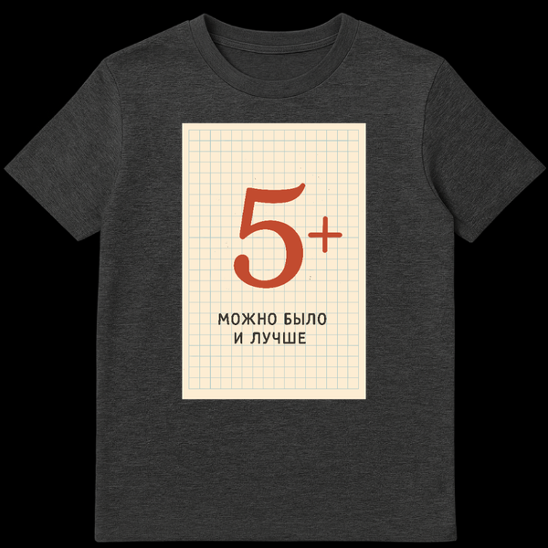 Embrace the spirit of academic striving with our unique Russian T-Shirt. This engaging garment showcases a large, stylized red ‘5+’āthe highest possible grade in the Russian school systemāreminiscent of a teacher’s bold mark. It’s set against a background expertly mimicking the familiar old, grid-lined notebook paper, evoking a nostalgic, retro-academic feel. Below this impressive grade, in stark black sans-serif text, is the Russian phrase ‘ŠŠŠŠŠ ŠŠ«ŠŠ Š ŠŠ£Š§ŠØŠ,’ which translates to ‘It could have been better.’ This phrase, often used humorously or to express a relentless pursuit of perfection, adds a layer of self-deprecating wit to the design. It’s a playful nod to the high standards and critical self-evaluation common in Russian culture and academia. Perfect for students, teachers, Russian speakers, or anyone with a dry sense of humor about striving for excellence, this t-shirt is a conversation starter that blends cultural insight with a universally relatable theme of ambition and humility.