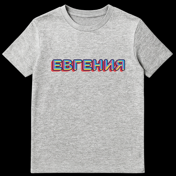 Dive into a splash of color with our unique ‘Evgenia’ t-shirt, a wearable piece of pop art! This captivating garment proudly displays the beautiful Russian name “Evgenia” (ŠŠŠŠŠŠŠÆ in Cyrillic) in an unforgettable, energetic design. The name, meaning ‘noble’ or ‘well-born,’ is rendered in bold, impactful block letters, reminiscent of classic pop art aesthetics. Each letter is meticulously crafted with a sharp dark blue outline, giving it a distinct edge, and a dramatic red drop shadow that makes the text truly pop off the fabric. Adding to its playful charm, the letters are filled with an exciting mix of patterns: cheerful yellow dots, stylish pink stripes, and serene light blue solid sections. This t-shirt is perfect for those named Evgenia, anyone with a connection to Russian culture, or simply lovers of vibrant, artistic fashion statements. It’s a fantastic way to showcase a unique identity with a burst of color and style.
