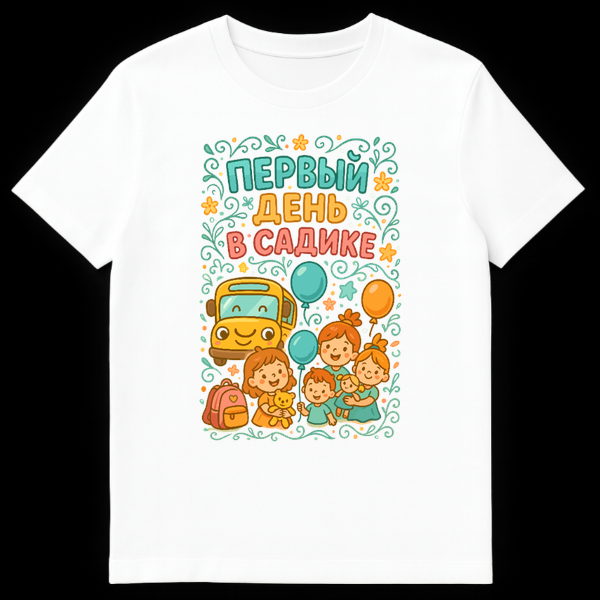 The theme is explicitly “First Day of Kindergarten/Preschool,” beautifully conveyed by the Russian text: “ŠŠŠ ŠŠ«Š ŠŠŠŠ¬ Š Š”ŠŠŠŠŠ.” This phrase, pronounced “Pervyy den’ v sadike,” directly translates to “First Day in Kindergarten/Preschool.” It’s a sweet, nostalgic nod to a universal experience, making it a perfect gift for parents, teachers, or anyone who cherishes childhood memories. The design appeals to those with a connection to Russian culture or simply an appreciation for charming, heartwarming artwork.