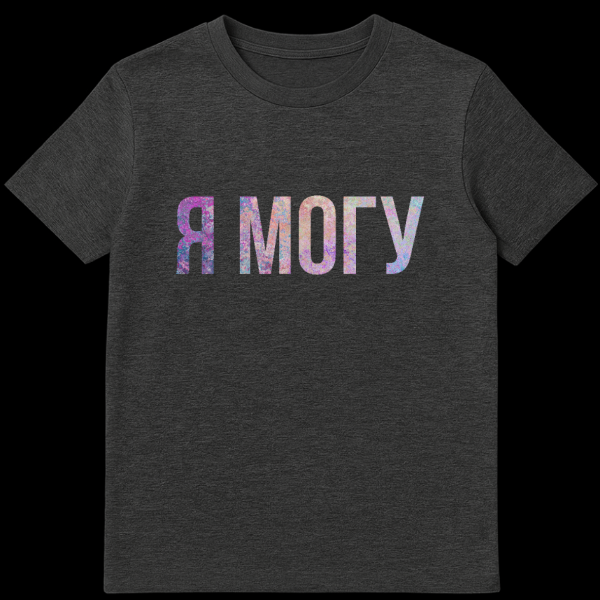 Embrace your inner strength with our unique ‘Ya MOGU’ (I CAN) t-shirt, a powerful statement piece that blends motivational spirit with artistic flair. The Russian text ‘ŠÆ ŠŠŠŠ£’, translating to ‘I CAN’, is rendered in a captivating distressed, textured font, giving it an authentic, lived-in feel. What truly sets this design apart is its stunning pastel, watercolor-like color palette, featuring harmonious blends of soft pink, serene blue, vibrant purple, and warm orange. These delicate hues beautifully contrast with the solid grey background, making the message pop while maintaining an elegant, artistic aesthetic. This t-shirt is perfect for those who appreciate a blend of cultural expression and personal empowerment, offering a subtle nod to the Russian language while universally communicating a message of capability and determination. It’s more than just clothing; it’s an wearable reminder of your potential.