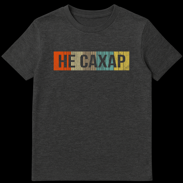 Embrace a unique blend of vintage style and playful irony with this distinctive t-shirt. The design prominently features the Cyrillic phrase “ŠŠ Š”ŠŠ„ŠŠ ” (pronounced “Ne Sakhar”), which translates directly to “Not Sugar.” This phrase is a common, often humorous, way to describe someone or something that is not easily manipulated, sweet-talked, or taken advantage of ā essentially, a person with a strong, unyielding character. It’s a statement of resilience and self-reliance, delivered with a wink.