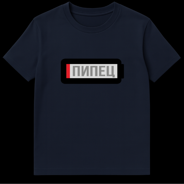 Embrace the universal feeling of low battery anxiety with this uniquely humorous Russian T-Shirt. The design showcases a minimalist, pixel-art style battery icon, almost completely depleted with just a sliver of red indicating its critical state. Prominently displayed in gray within the battery is the Russian word “ŠŠŠŠŠ¦” (PIPETS). This powerful slang term translates to “screwed,” “kaput,” or “the end,” perfectly capturing that moment of dread when your device is about to die. It’s a clever and relatable joke for anyone who’s ever faced a rapidly draining phone or laptop. This shirt combines a clean, modern aesthetic with a witty cultural reference, making it a perfect conversation starter and a fun way to express a very modern predicament.