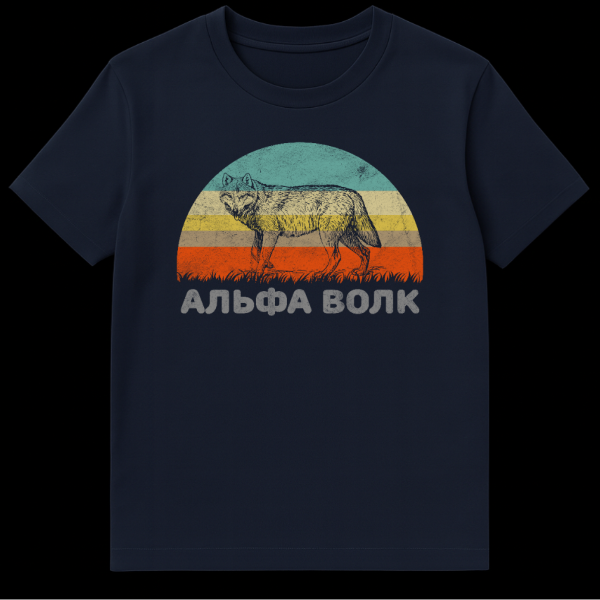 Russian T-Shirt: Retro Sunset Wolf Wilderness Vintage