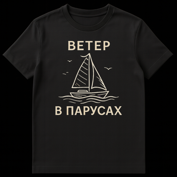 Russian T-Shirt: Wind in Sails Minimalist Sailboat Art