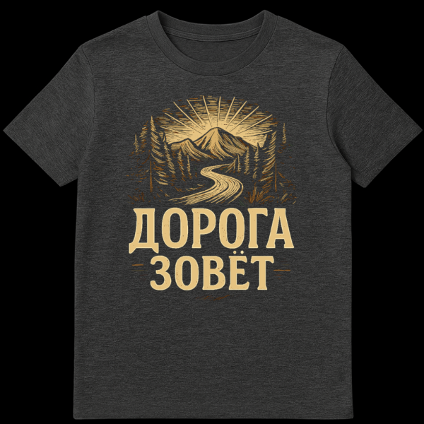 Journey into the heart of the wild with our captivating Russian T-Shirt, showcasing a timeless vintage-style graphic. The design features a serene mountain peak under a rising sun, flanked by classic pine trees, with a winding road beckoning you forward. Rendered in rich, earthy gold and brown tones, this graphic evokes a sense of nostalgia and the rugged beauty of nature. Below the stunning visual, the Russian text “ŠŠŠ ŠŠŠ ŠŠŠŠŠ¢” is displayed in a perfectly matched distressed font. This powerful phrase translates to “The Road Calls,” a universal sentiment for wanderers and adventurers. It speaks to the innate human desire for exploration, the thrill of discovery, and the irresistible pull of the unknown path. This t-shirt is perfect for those who feel the pull of the open road, appreciate vintage aesthetics, and have a connection to Russian culture or language. It’s more than just apparel; it’s a statement of adventure and the enduring call of the wild.